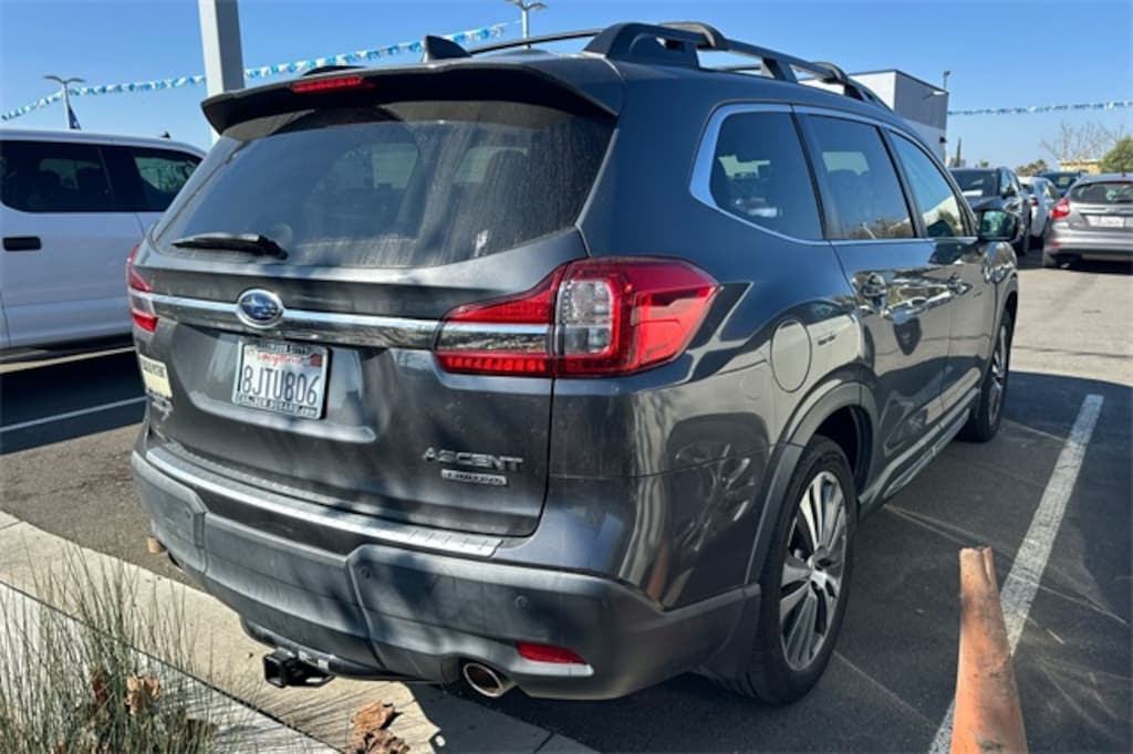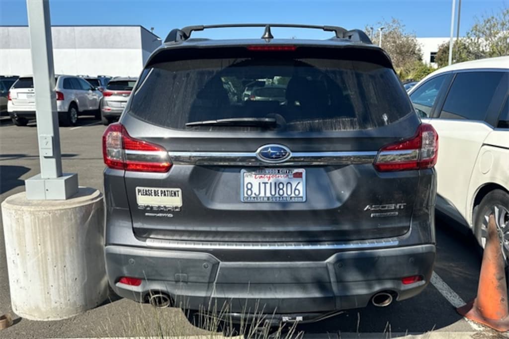 20" Alloy Wheels, 3rd row seats: bench, 4-Wheel Disc Brakes, 6 Speakers, ABS brakes, Air Conditioning, Alloy wheels, AM/FM radio: SiriusXM, Auto High-beam Headlights, Auto-dimming Rear-View mirror, Automatic temperature control, Axle Ratio: 4.44, Brake assist, Bumpers: body-color, CD player, Compass, Delay-off headlights, Driver door bin, Driver vanity mirror, Dual front impact airbags, Dual front side impact airbags, Electronic Stability Control, Emergency communication system: STARLINK Safety and Security, Exterior Parking Camera Rear, Four wheel independent suspension, Front anti-roll bar, Front Bucket Seats, Front Center Armrest, Front dual zone A/C, Front fog lights, Front reading lights, Fully automatic headlights, Garage door transmitter: HomeLink, Heated door mirrors, Heated Front Bucket Seats, Heated front seats, Heated rear seats, Heated steering wheel, Illuminated entry, Knee airbag, Low tire pressure warning, Memory seat, Occupant sensing airbag, Outside temperature display, Overhead airbag, Overhead console, Panic alarm, Passenger door bin, Passenger vanity mirror, Perforated Leather-Trimmed Upholstery, Power door mirrors, Power driver seat, Power Liftgate, Power passenger seat, Power steering, Power windows, Radio data system, Radio: Subaru STARLINK 8.0" Multimedia Plus System, Rear air conditioning, Rear anti-roll bar, Rear reading lights, Rear seat center armrest, Rear window defroster, Rear window wiper, Remote keyless entry, Roof rack: rails only, Security system, Speed control, Split folding rear seat, Spoiler, STARLINK/Apple CarPlay/Android Auto, Steering wheel mounted audio controls, Tachometer, Telescoping steering wheel, Tilt steering wheel, Traction control, Trip computer, and Variably intermittent wipers.