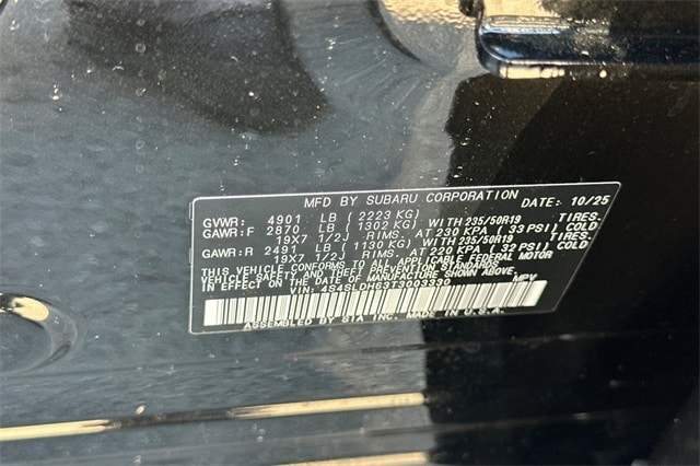 Harman/Kardon Speaker System and Power Rear Gate and Reverse Automatic Braking (Harman/Kardon Speaker System, Power Rear Gate, Reverse Automatic Braking (RAB) System, and SI-Drive Dual-Mode Engine Performance Management), Sport Package (Auto-Dimming Mirror with Compass and HomeLink, Rear Bumper Cover, and Splash Guards), Subaru Certified Pre-Owned Certified, 4-Wheel Disc Brakes, 6 Speakers, ABS brakes, Air Conditioning, Alloy wheels, AM/FM radio: SiriusXM with 360L, Anti-whiplash front head restraints, Auto High-beam Headlights, Automatic temperature control, Brake assist, Bumpers: body-color, Driver door bin, Driver vanity mirror, Dual front impact airbags, Dual front side impact airbags, Electronic Stability Control, Emergency communication system: MySubaru Companion (5-years free), Exterior Parking Camera Rear, Four wheel independent suspension, Front anti-roll bar, Front Bucket Seats, Front Center Armrest, Front dual zone A/C, Front fog lights, Front reading lights, Fully automatic headlights, Heated door mirrors, Heated Front Bucket Seats, Heated front seats, Illuminated entry, Knee airbag, Leather steering wheel, Low tire pressure warning, Occupant sensing airbag, Outside temperature display, Overhead airbag, Overhead console, Panic alarm, Passenger door bin, Passenger vanity mirror, Power door mirrors, Power driver seat, Power moonroof: Panoramic, Power steering, Power windows, Radio data system, Radio: Subaru 11.6" Multimedia Plus System, Rear anti-roll bar, Rear seat center armrest, Rear window defroster, Rear window wiper, Remote keyless entry, Security system, Speed control, Speed-sensing steering, Split folding rear seat, Spoiler, Sport StarTex Upholstery, Steering wheel mounted audio controls, Tachometer, Telescoping steering wheel, Tilt steering wheel, Traction control, Trip computer, Turn signal indicator mirrors, Variably intermittent wipers, and Wheels: 19" x 7.5 J Bronze Finish Aluminum-Alloy.